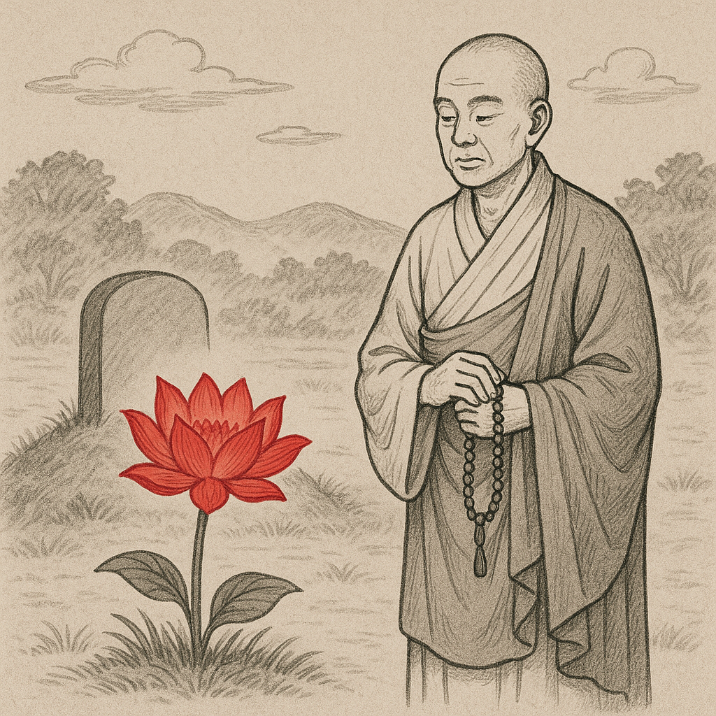 그로부터 얼마 후, 그녀가 묻힌 자리 위에 붉은 연꽃(紅蓮華) 한 송이가 솟아났는데, 그 향기와 빛깔이 매우 빼어났다.