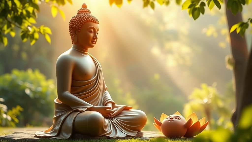 자비(慈悲, Metta and Karuna/Compassion) : 중생의 고통을 덜어주고 행복을 주려는 불교적 사랑을 의미합니다. 석존께서는 쓰다이와 흰 개, 그리고 모든 중생에게 자비로운 마음으로 깨달음을 주고자 하셨습니다.