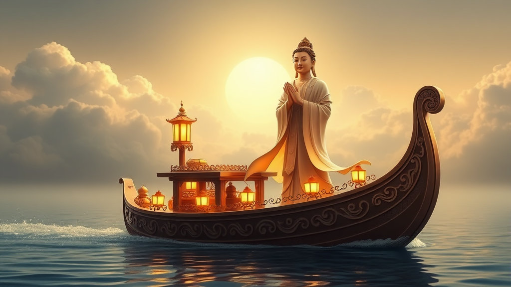 #반야용선(般若龍船)---불교에서는 사람이 죽으면 망자는 아미타불이 기다리는 피안의 극락정토로 간다고 한다. 그런데 그 망자가 극락정토로 갈 때 타고 가는 배가 반야용선이다. 이때에 인로왕보살(引路王菩薩)이 반야용선을 인도한다.
