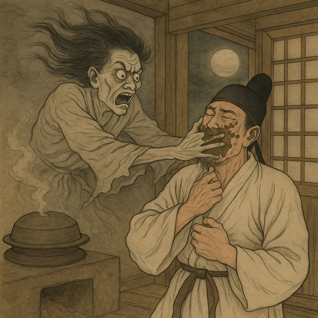 밥을 지으면 솥뚜껑은 그대로인데, 뚜껑을 열면 밥 대신 똥이 가득 들어 있었다. 무언가 변괴를 부리는 귀신의 짓이라고 경계하면, 어떤 때는 화분이나 책상이 저절로 공중에 떠다니고, 큰 가마솥 뚜껑이 천장에 달라붙어 이상한 소리를 내기도 했다.