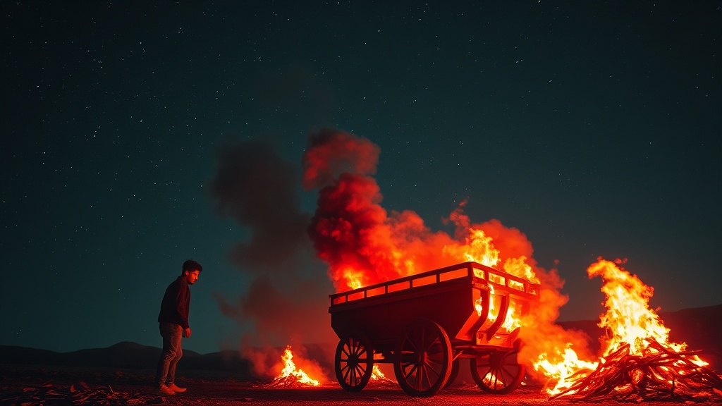 Ultimately, without discerning the cart's inherent value, he relentlessly burned it down and made it into charcoal.