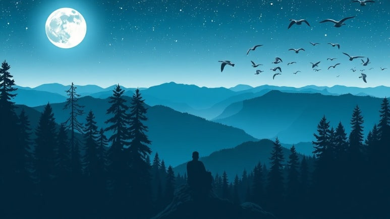 중국 남송시대의 선승 야보도천(冶父道川)의 게송이다. ‘고요한 밤 산당에 묵묵히 앉으니’는 참선삼매의 경지다. 그 경지에서 본연의 세계를 적요히 비추고 있다는 것은 이미 우주법계의 실상을 보고 있다는 것이다. 깨달음의 세계를 그렇게 표현하고 있다. 그런 와중에 서풍이 불어 숲을 흔들고 기러기의 끼득끼득 소리가 들린다. 선에 몰입한 무아의 세계가 비실재의 세계라면 숲과 기러기소리는 실재의 세계다. 초탈지경에서 문득 현상계의 일이 떠오른 것이다. 그런데 그 현상계의 일이란 하나의 소식이다. ‘그것은 무슨 소식인가’라고 묻는 데에 이 시의 묘미가 있다.