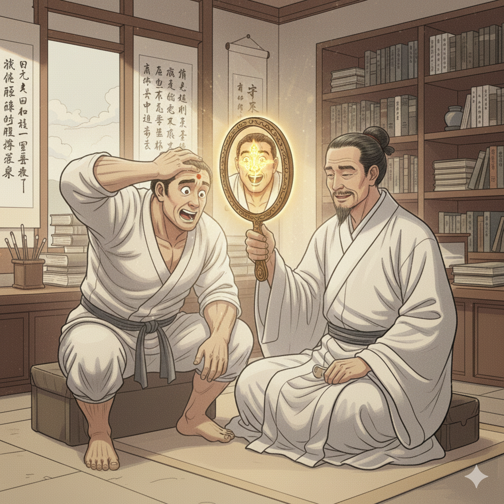 - 핵심 정보: 외부의 도움(거울=법)을 통해 자신의 내면에 있던 진실을 자각하고 깨달음을 얻는 결정적인 순간입니다.