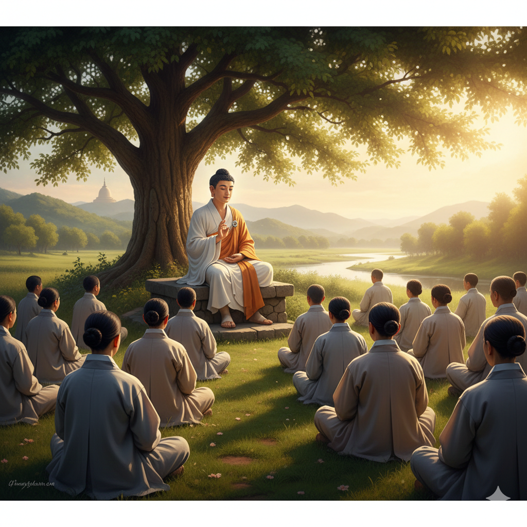 석가모니 부처님께서 인도 사밧티국 서쪽, 푸른 나무와 잔잔한 바람 소리가 어우러진 조용한 쿠시라원에서 수행자들을 모으셨습니다. 마치 디지털 디톡스를 위해 자연 속 명상 리트릿에 모인 현대인들처럼 말이죠. 따스한 아침 햇살 아래, 부처님은 인류에게 영원히 유효할 깊은 가르침을 들려주셨습니다.