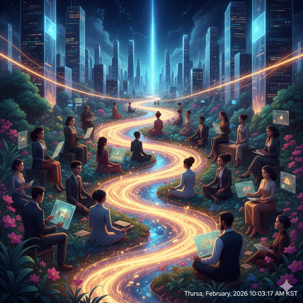 아주 먼 옛날, 모든 것이 빠르게 변하고 물질이 숭배되던 시대가 있었습니다. 사람들은 돈을 그저 차가운 쇠붙이나 종잇조각으로만 여겼지요. 그러나 지혜로운 스승님은 말씀하셨습니다. "돈은 생명을 가진 거대한 황금 강물과 같으니라. 그 강물은 스스로 눈을 가졌고, 흐르는 대로 만물을 살리고 변화시키느니라."