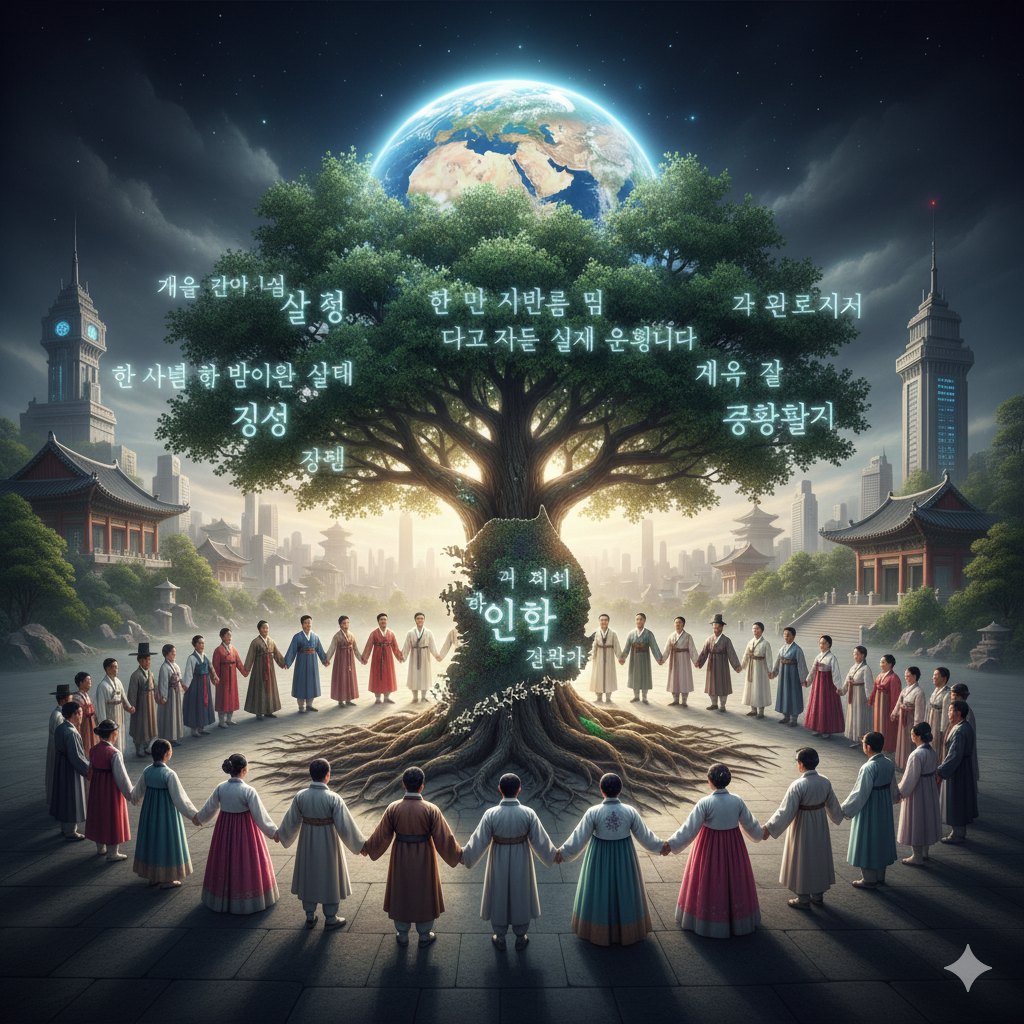 - 글로벌 확장 요소: 대한민국의 '홍익인간(弘益人間)' 정신은 '널리 인간 세상을 이롭게 한다'는 의미로, 특정 민족이나 국가에 국한되지 않는 보편적 인류애와 봉사 정신을 담고 있습니다. 이를 글로벌 리더십의 원칙이나 국제 협력의 기반으로 제시하여, 인류 전체의 번영과 조화를 위한 한국의 역할을 강조할 수 있습니다. 이는 UN의 지속가능발전목표(SDGs)나 인류 공영을 위한 다양한 국제적 노력과 연결될 수 있는 철학적 배경을 제공합니다.