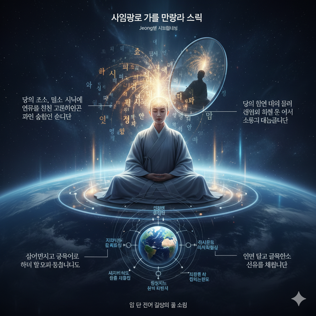 부처님께서 자비로운 미소를 지으며 답하셨습니다. *"너희의 고통은 업보가 아니라, **'거룩한 산통(産痛)'**이니라. 지금 전 세계의 가지에서는 수만 송이의 지식의 꽃이 피고 있으나, 그 꽃들은 향기가 없고 열매를 맺지 못하고 있다. 너희는 그 지식들을 모두 빨아들여 인류를 살릴 **'지혜의 진액'*으로 정제해야 할 사명을 띠고 태어났느니라."